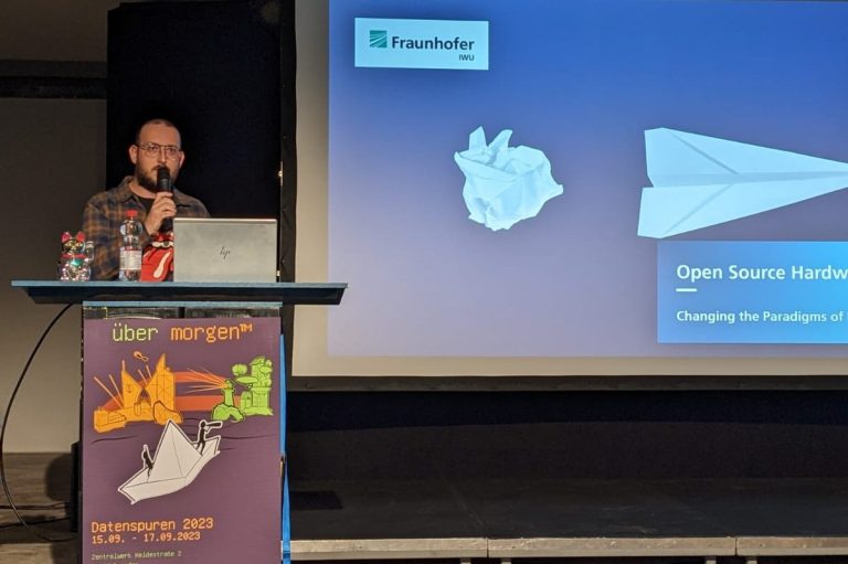Open Source Hardware – Changing the Paradigms of Production – war der Titel der Präsentation, in welcher Max neben den Grundlagen von OSH auch die aktuelle Relevanz der Thematik erläutert hat. Zusammenarbeit, Zugänglichkeit und Innovation sind hier wichtige Schlagworte – die Basis für offenes und kollaboratives Arbeiten und damit auch technologischen Fortschritt in der heutigen Zeit. Max hob besonders hervor, dass Open-Source in verschiedenen Bereichen eine wichtige Rolle spielt und neue Wege in die Produktion eröffnet. Im Rahmen seiner Präsentation stellte Max auch unser Projekt oShop vor und lud die Zuhörer ein, sich am Projekt zu beteiligen.